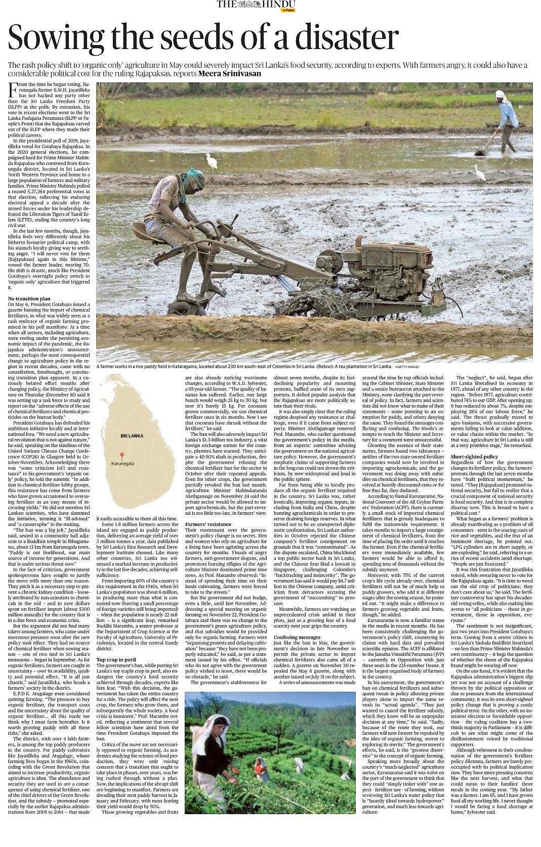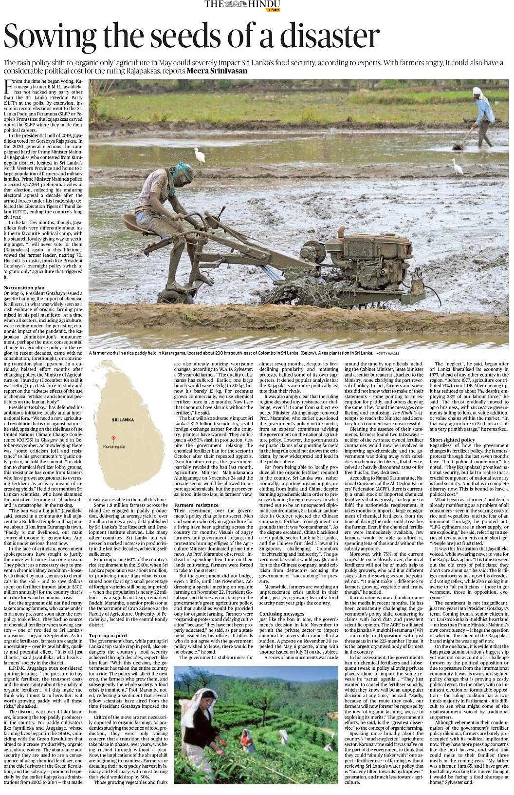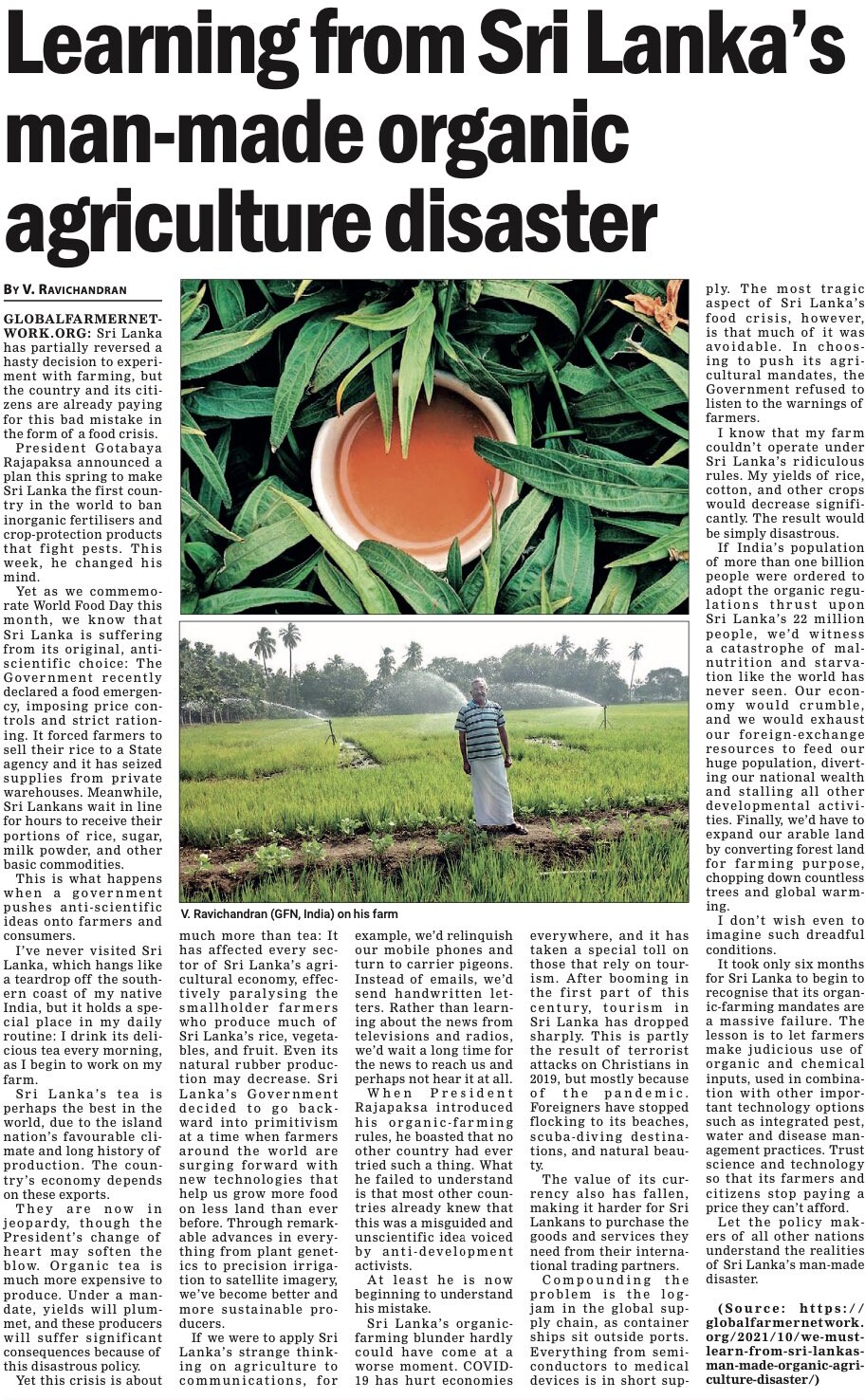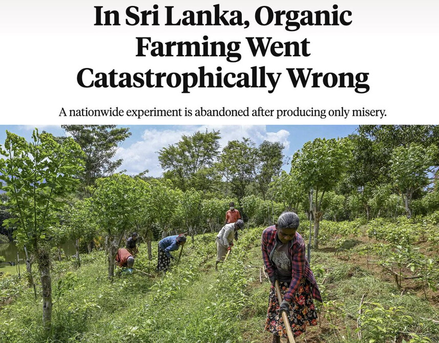 எனும் தலைப்பில் ஒரு கட்டுரையை வெளியிட்டது, அதில் 100% கரிம விவசாயத்தின் திடீர் நடைமுறைப்படுத்தல் ஆரம்பத்திலிருந்தே தோல்வியடையும் என கருதப்பட்டது என்பதை வெளிப்படுத்தியது.